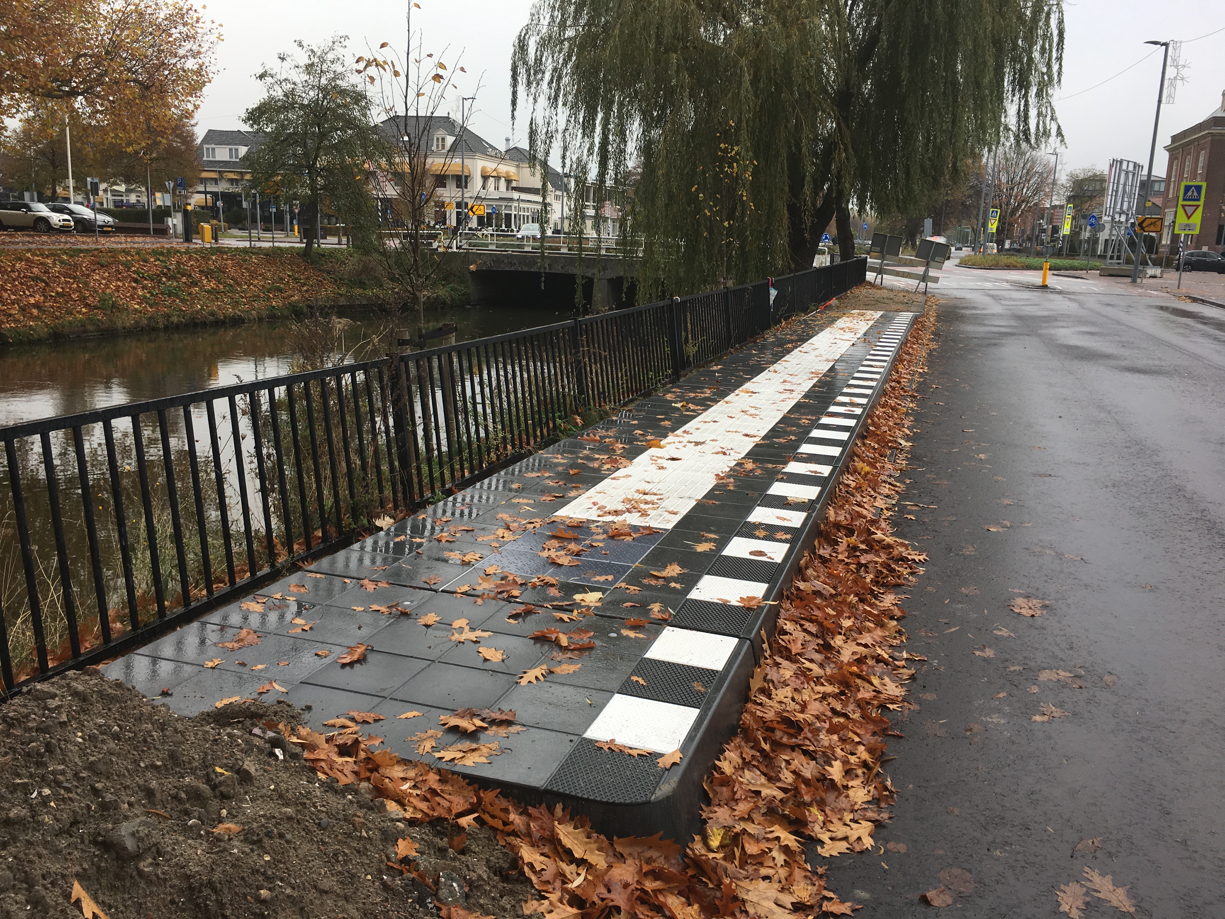 - geleidevoorzieningen als geleidelijnen, instapmarkering en waarschuwingsmarkering reeds prefab aangebracht;