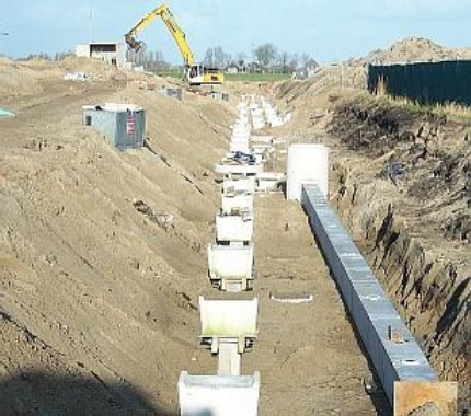 De prefab betonnen voorgespannen elementen zijn inwendig voorzien van een kunststofbekleding, de onderlinge verbinding geschiedt middels flexibele kunststof insteekmoffen. De diameters Ø 250 mm t/m 400 mm kunnen standaard voorzien worden van knevelinlaten ø 125 mm en ø 160 mm (max. 2 st/ element). De diameters Ø 500 mm kunnen standaard voorzien worden van knevelinlaten ø 160 mm (max. 2 st/ element).