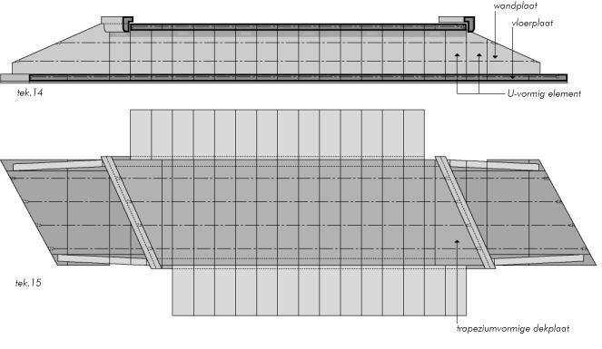 Voor de verlichting kunnen sparingen voor armaturen worden aangebracht, evenals doorgaande kanalen voor de bedrading. De plaats en afmetingen van deze sparingen worden in overleg met de opdrachtgever bepaald. Gekozen kan worden tussen het onderbrengen van de armaturen in de hoekafschuining, éénzijdig of tweezijdig (tek. 8), of in het midden van het dek (tek. 9).