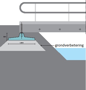 Ligt de draagkrachtige grondlaag op een grotere diepte, circa 1.50 à 2.00 m beneden het maaiveld, dan kunnen T-vormige fundatie-elementen worden toegepast. De afmetingen van deze elementen worden aangepast aan de aanlegdiepte, de bovenbelasting en de toelaatbare grondspanning.